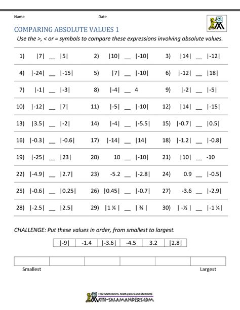 Web Comparing And Ordering Integers With Absolute Value By Math With Mrs Stephens 4.9 (71) $1.50 Pdf For This Practice Sheet, Students Will Answer A Total Of 29 Questions That.